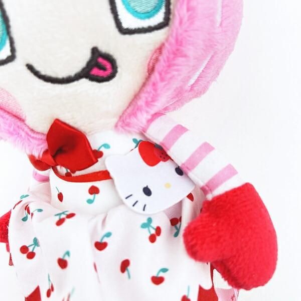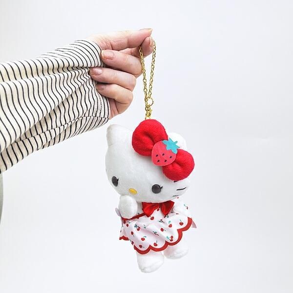 まずご紹介するのは、「サンリオ ハローキティ × メゾピアノ (Mezzo Piano) ハローキティ マスコット」。サイズ:15cm。ふんわりとした洋服に、さくらんぼが描かれています。
