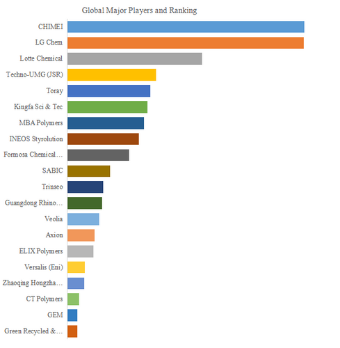 LP Informationのトップ企業研究センターによると、再生ABS樹脂の世界的な主要製造業者には、CHIMEI、LG Chem、Lotte Chemical、Techno-UMG (JSR)、Toray、Kingfa Sci & Tec、INEOS Styrolution、MBA Polymers、Formosa Chemicals & Fibre Corporation (FCFC)、SABICなどが含まれている。2024年、世界のトップ10企業は売上の観点から約56.0%の市場シェアを持っていた。