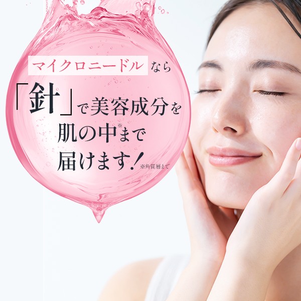 化粧水や美容液が潤いを補給するのは肌の表面まで。マイクロニードルなら、針状なので、角質層までダイレクトに届きます。美容成分を肌の奥※までしっかり届けることができるのです。