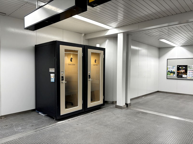 両駅に設置されるCHATBOXは、ブース内にフリーWiFiやUSB充電コンセント、空調機器(エアコン)を装備しており、web会議や電話などのビジネスシーン、オンライン面接、プライベート空間の確保といったご利用にも柔軟に対応します。