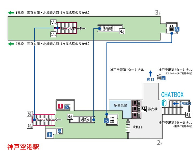 アクセス:神戸新交通ポートライナー線「神戸空港駅」改札前