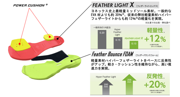 2.「フェザーライト エックス」と「フェザーバウンスフォーム」採用で軽量性と反発性を両立