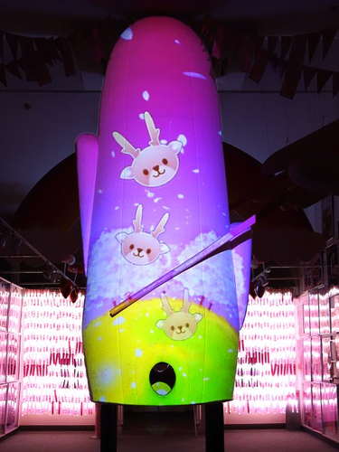 ピンクに光る『岩下の新生姜キャラクター5段ひな飾り』が2月15日から3月3日まで登場。新生姜ペンライト180本のピンクの光がキラキラと照らし、かわいらしく、楽しい雰囲気でご来館のみなさまをお出迎えします。