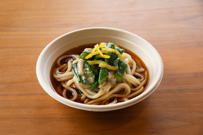 さわやかな柚子の香りが舌を刺激し、オクラとの相性も抜群のうどん。柚子の皮をトッピングしてさらに風味を増し、夏の暑さを吹き飛ばす一杯です。ヘルシーでさっぱりとした味わいがうどん好きを虜にすることでしょう。