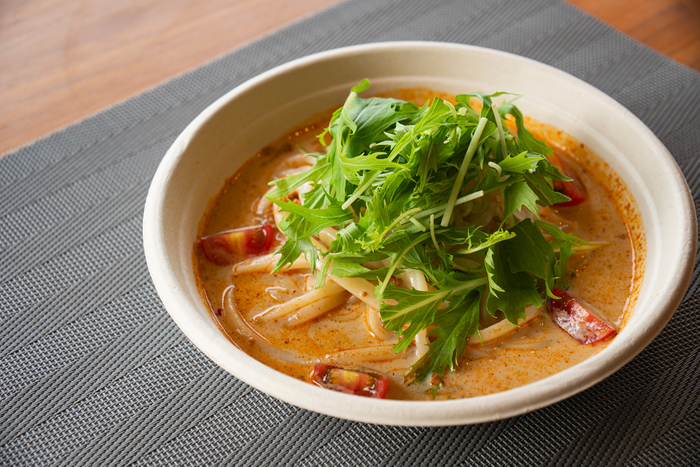 少しピリッと辛いけれど、豆乳でまろやかに仕上げた坦々うどん。辛さが苦手な方でも安心して食べられる一品です。濃厚な豆乳の風味とコクが、夏のうどんを新たな味わいへと導いてくれます。暑い日でも、辛さと豆乳のマイルドな味わいに心が和みます。