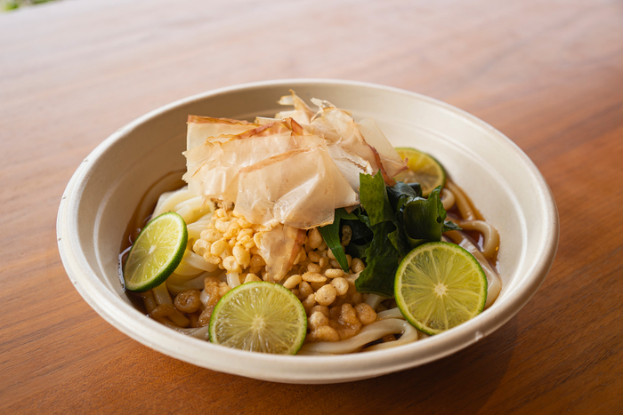 あっさりとした口当たりでありながら、コシのあるツルッとした食感が特長のすだちおろしうどん。爽やかなすだちの香りが広がり、うどんの風味を引き立てます。疲れた体にも心地よく、暑い夏にぴったりの一品です。