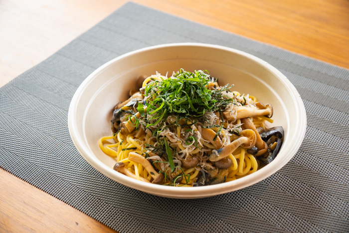 和食と洋食の絶妙な融合!バターと醤油の香りがしらすときのこ、新鮮なナスときのこの風味と相性抜群です。さらに、香り高い大葉がパスタに爽やかなアクセントを与え、夏の和風パスタの楽しみを存分に味わえます。