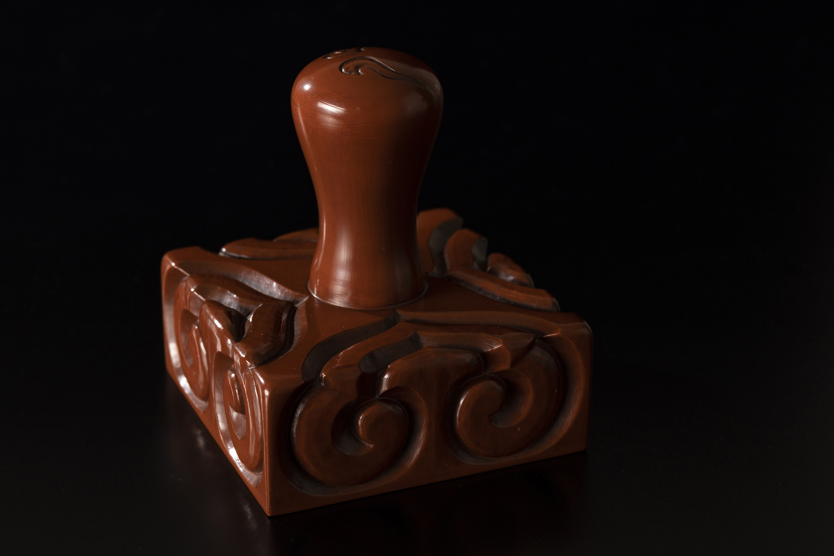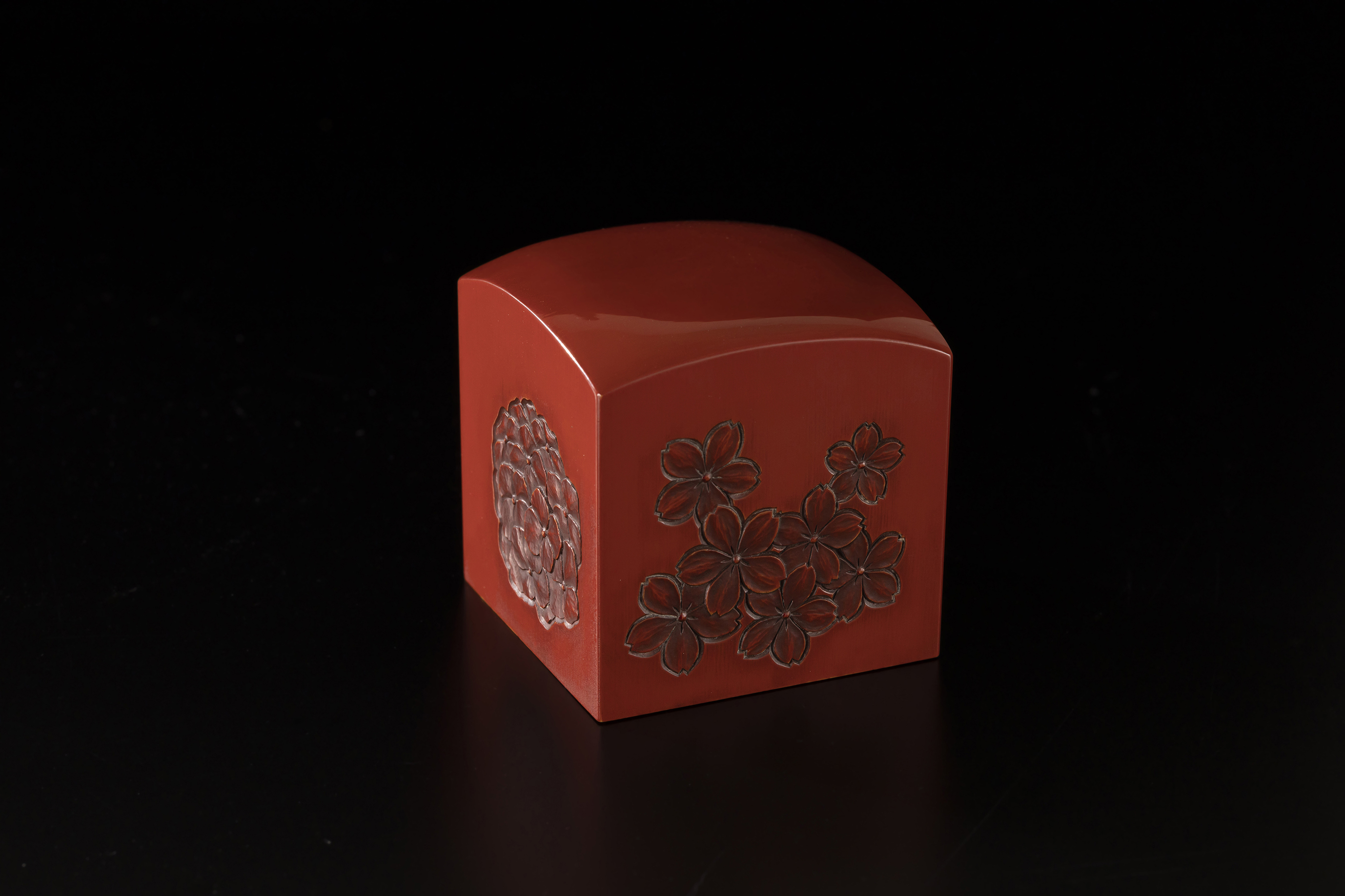鎌倉彫職人が印章の装飾部分を彫刻塗装し、印章彫刻職人が印章の印影部分を彫刻を行い共同制作した伝統的工芸品と伝統文化が融合した全国でも始めての取組となります。