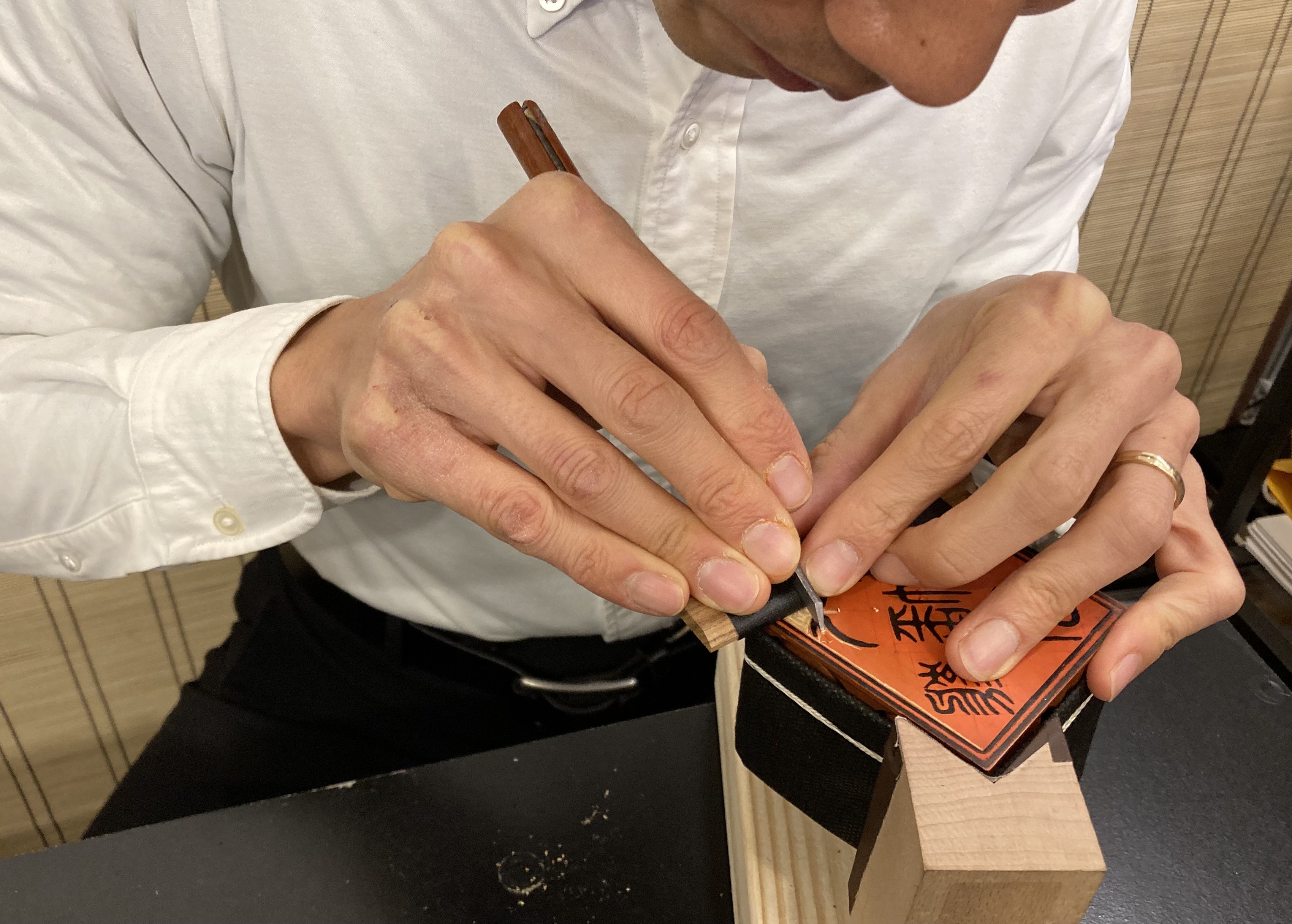 (7)印影部 彫刻仕上加工 :鎌倉はんこ 職人2名