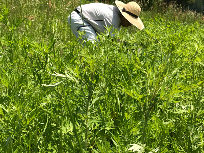 初夏の雨のおかげで、蓬がぐんと成長し、今年も摘み取りの時期を迎えました。