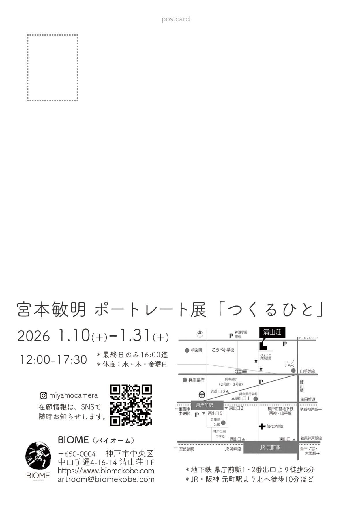 【BIOME】2026年1月宮本敏明「つくるひと」ポートレート展および、ギャラリー移転のご案内