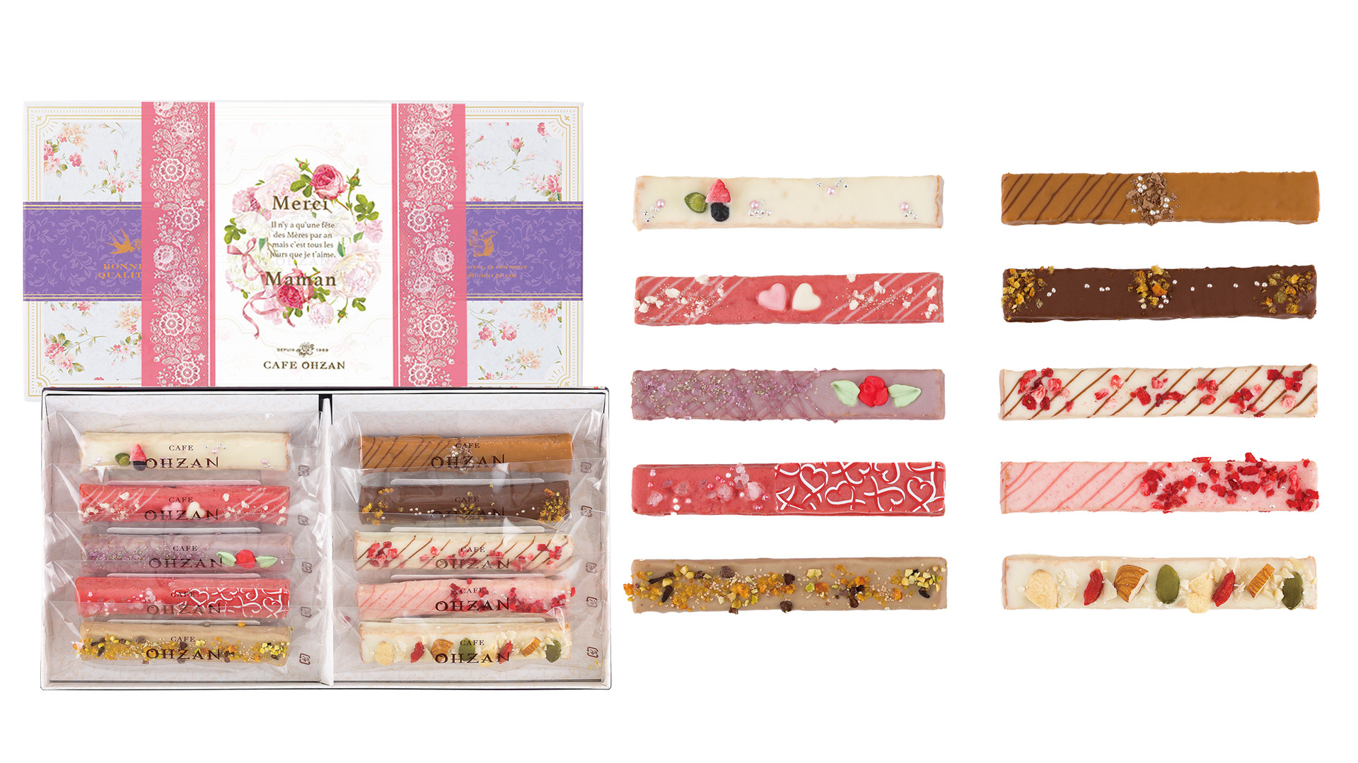 母の日に合わせた数量限定商品として、“Ma cherie Maman”(大好きなお母さん)と名付けられた2つの商品を発売します。母の日向けのメッセージを印刷した掛け紙もあり、贈り物にぴったりの商品になっています。