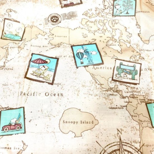 こちらも珍しい、マップ柄。地図上でくつろいだり楽しんだりしているスヌーピーに、ほっこりします。外出がままならない今だからこそ、気分もアガるデザインですよね。
