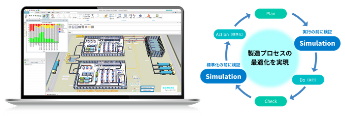 現場のエンジニアがPlant Simulationを使いこなし、シミュレーションモデルを自社で内製化していくことで、より柔軟で迅速な製造プロセスの改善を図ります。