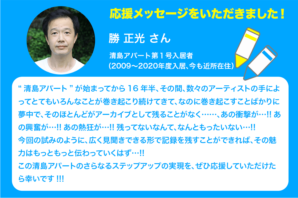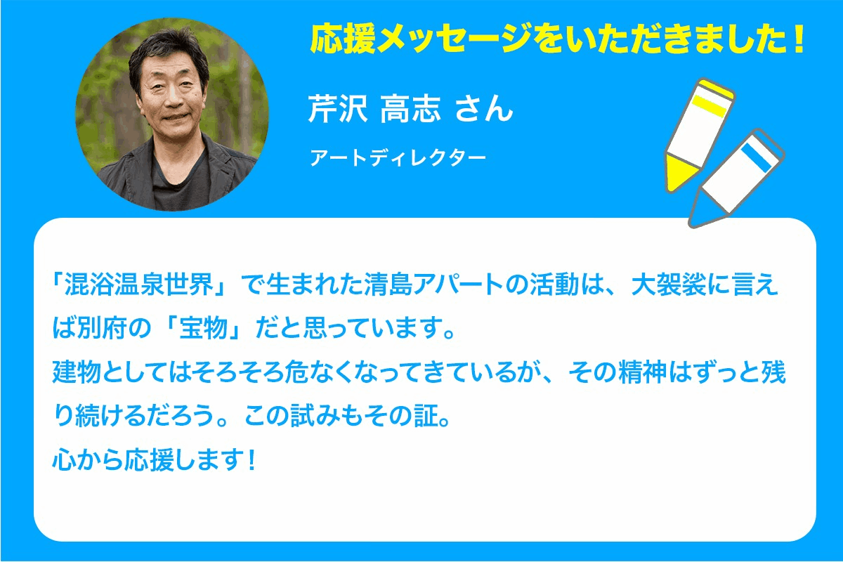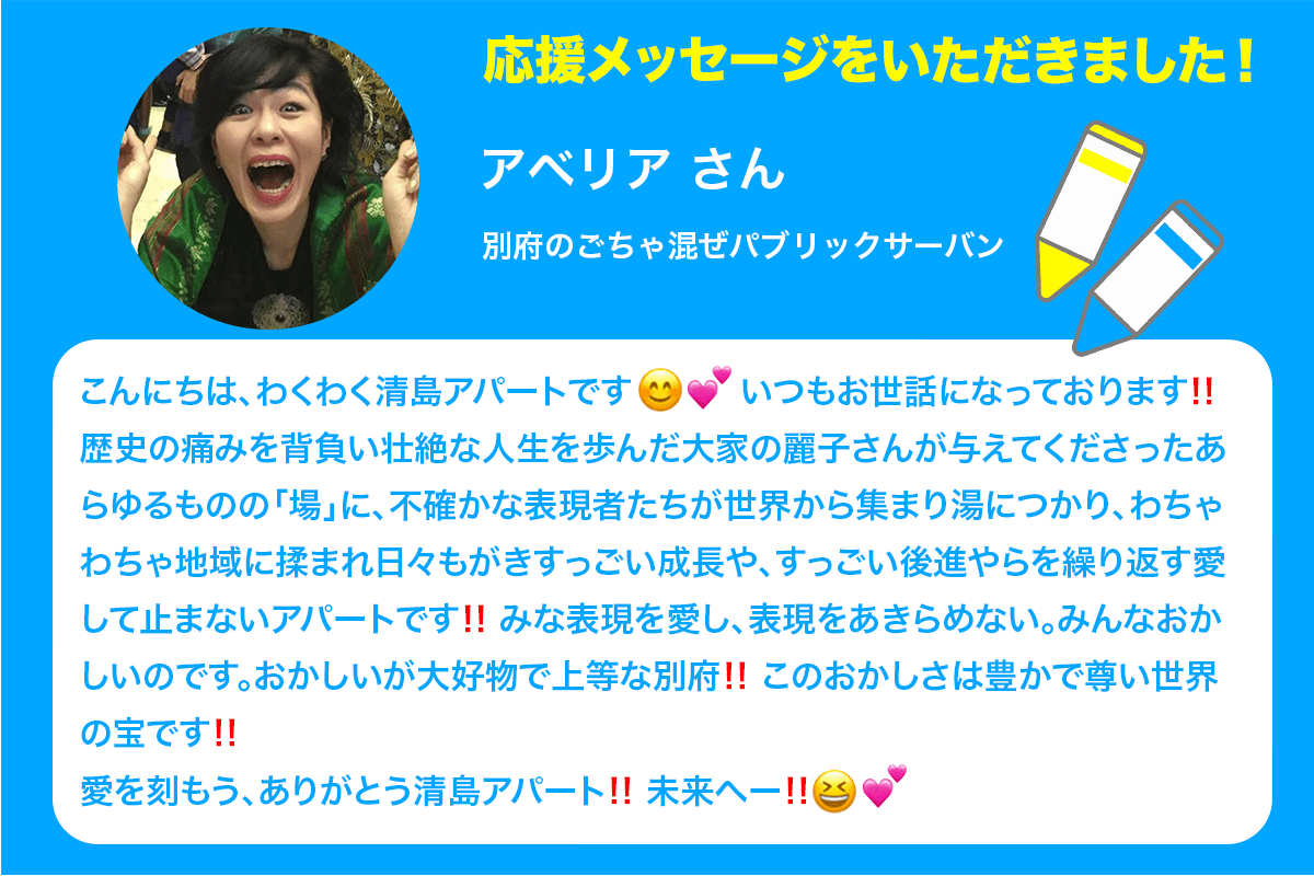 皆さまとともに、清島アパートの「これから」を創っていきたいと思います。