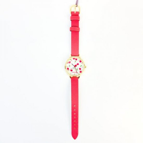 ピンクのベルトは、ガーリーさがアップ♪肌なじみもよくて、さくらんぼのかわいさが引き立ちます。