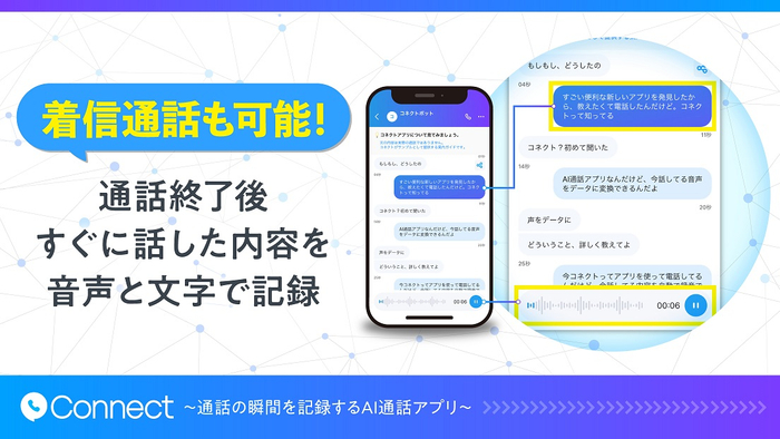 通話内容を自動録音・文字記録するAI通話アプリ「コネクト」がiOS版で先行配信開始!