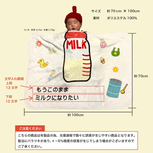 赤ちゃんがお昼寝中もコスプレを楽しむことができるユニークアイテムです。肌触りが良く、赤ちゃんの敏感な肌にも適しています。さらに、ご希望の文字を追加できるので、名前や特別な日付、お好きなメッセージを入れて、世界で一つだけのカスタマイズされたブランケットを作成することができます。お子様の日常の一コマが、まるで特別なコスプレイベントのような楽しいシーンに変わります。家族や友人との素敵な思い出作りにも最適です。