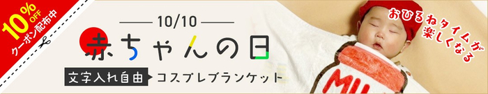 株式会社太陽(所在地:千葉県匝瑳市飯倉台28-11、代表取締役:片岡正徳)が展開する「おもしろTシャツの俺流総本家」では、10月10日(金)「赤ちゃんの日」にちなんで、名入れ対応可能なかけるだけでコスプレ気分なすやすや「コスプレブランケット」の期間限定セールを開催いたします。