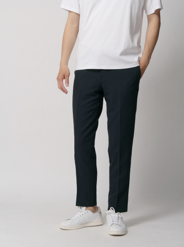 パンツデザインは、膝から裾にかけて細くなるテーパードシルエットでスッキリと見えるフィットモデルを採用しています。色柄は、ビジネスでも使いやすいネイビー、グレーを中心に織柄と無地の計6種類を取り揃えています。