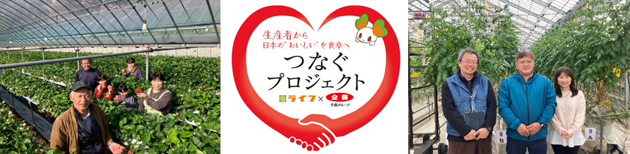 「つなぐプロジェクト」は「日本の“おいしい”を食卓へ」というコンセプトのもと、国産の“おいしい”食材を多くのお客様にご購入いただくことが、産地および生産者への貢献につながるという思いから、JA全農グループと協力し2020年より開催しており、お客様からもご好評をいただいております。店頭で国産の農産物のPRを行うとともに、産地・生産者をより身近に感じていただけるよう店頭チラシに生産者の写真と声を掲載いたします。