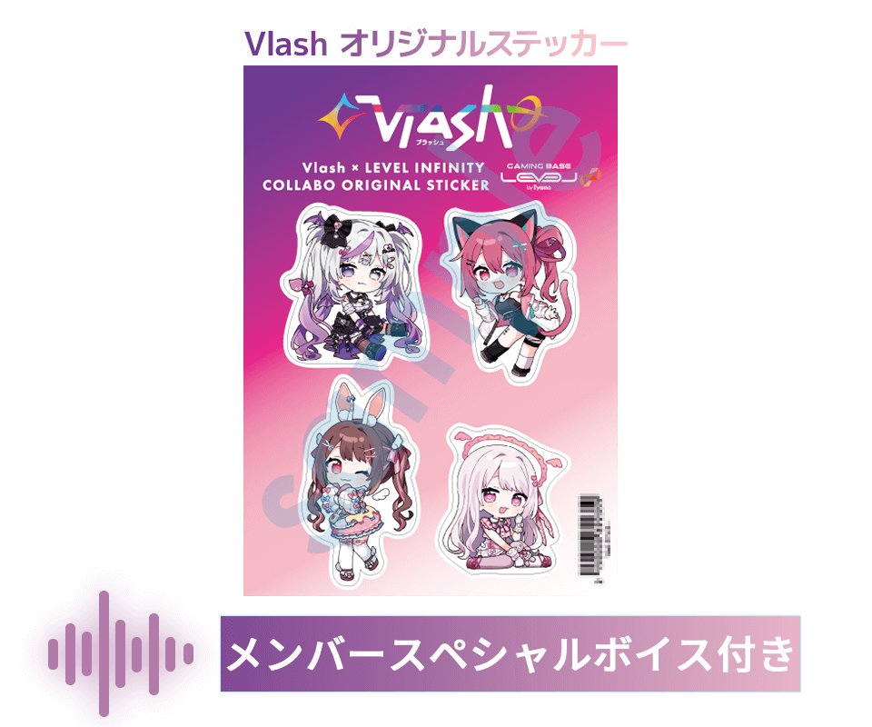 Vlash LEVEL∞コラボゲーミングPCをご購入頂いた方にもれなくVlashオリジナルステッカーとシステムボイスをプレゼントいたします。