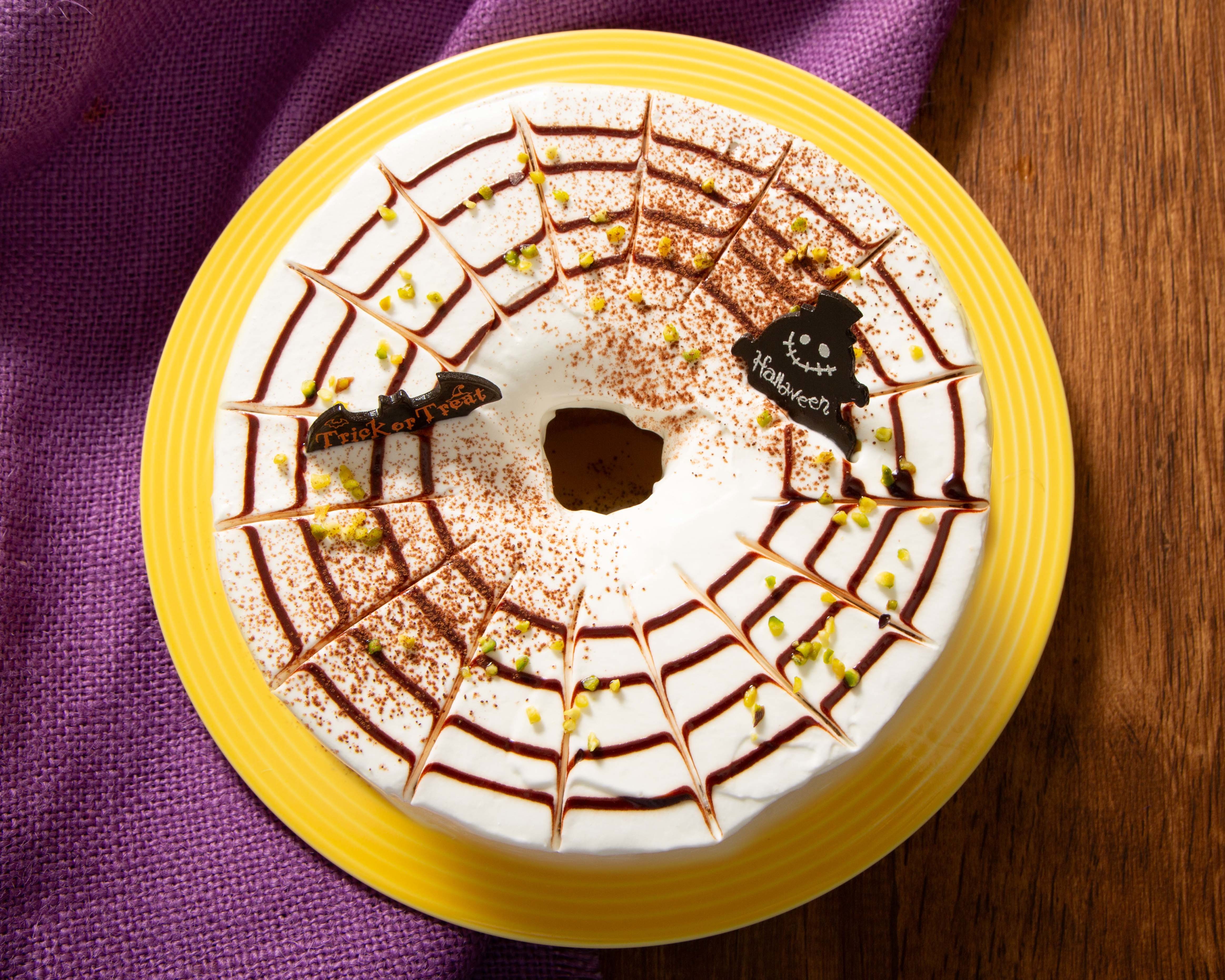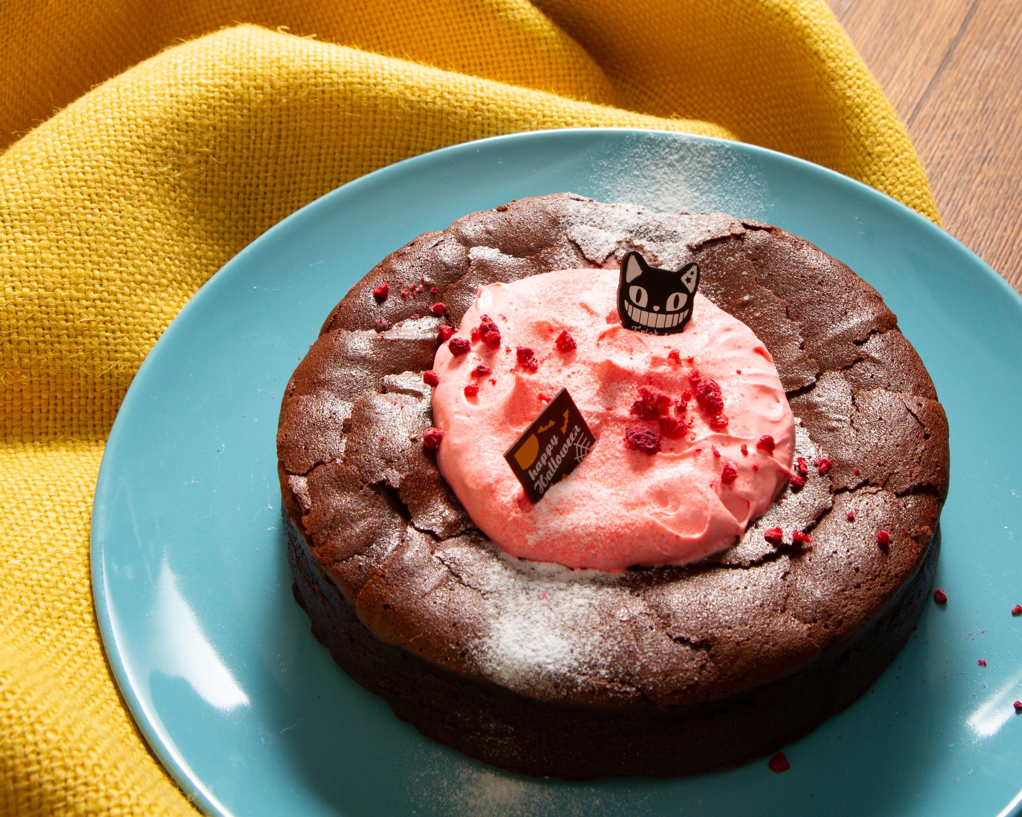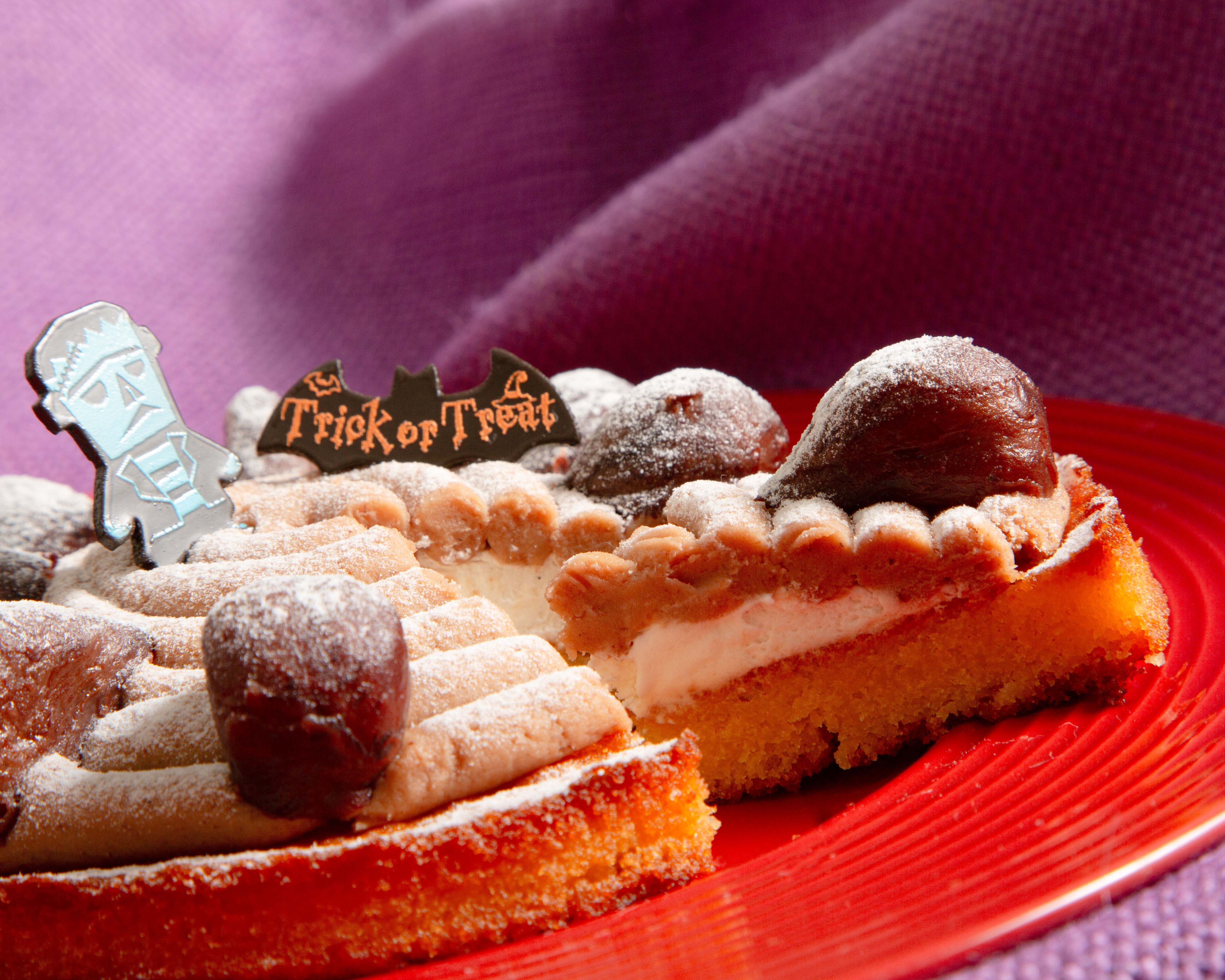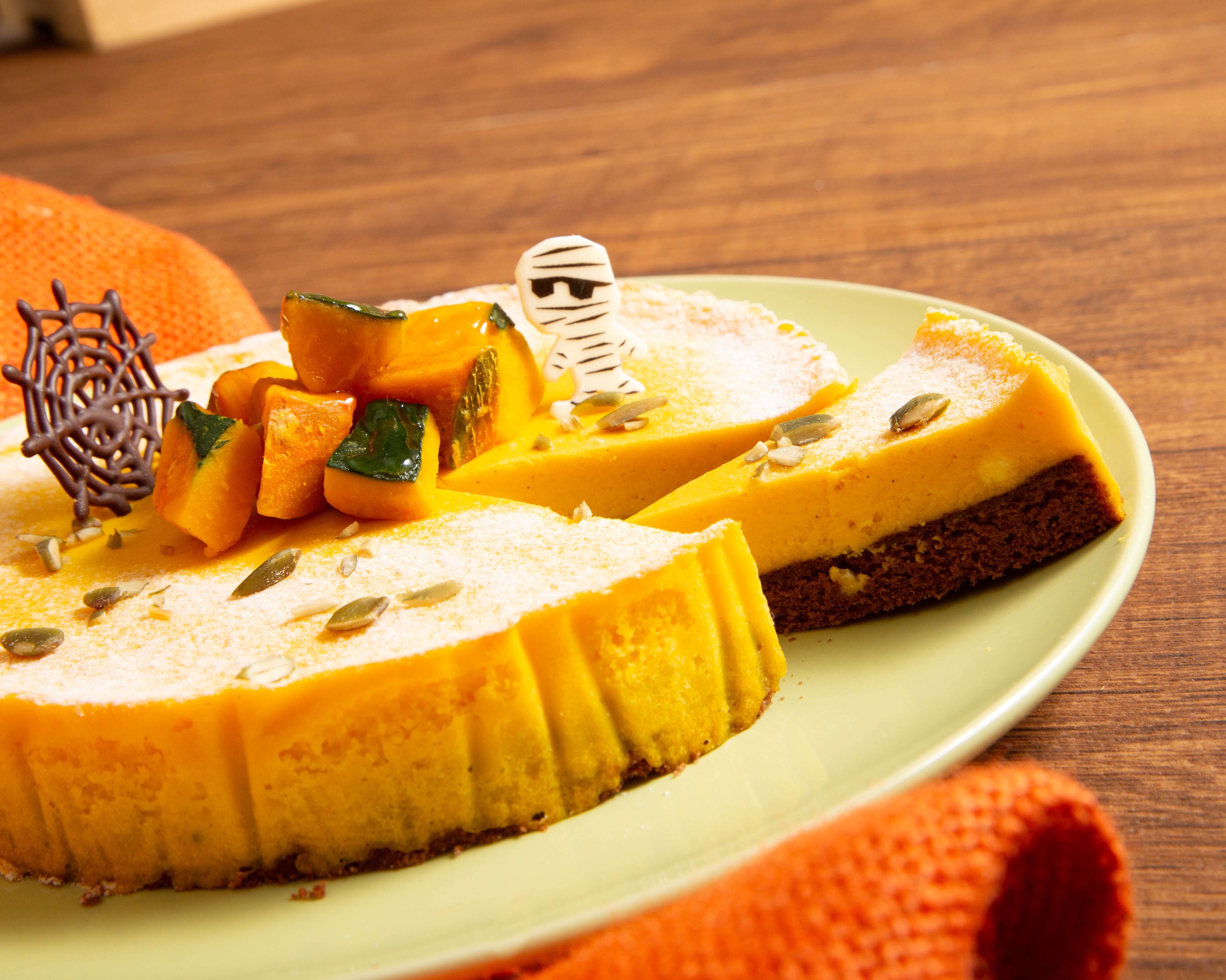 ボトムに敷いたふんわりと軽いチョコレートのスポンジ生地と、かぼちゃの濃厚な甘み、そしてクリームチーズの爽やかな味わいが三位一体となった、秋ならではのチーズケーキ。トップには、チョコレートで出来たフランケンシュタインやクモの巣など、ハロウィンらしいキュートな飾りつけを施し、気分までも高めてくれるスイーツに仕上げました。