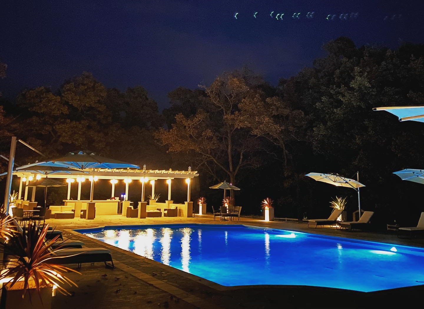 自然豊かな環境にある芳賀ファーム&グランピングでは、四季折々の楽しみがあります。春は桜と新緑、夏はプール&バーでのひと時を満喫、秋は紅葉や月見、冬は星空がひときわ輝きます。