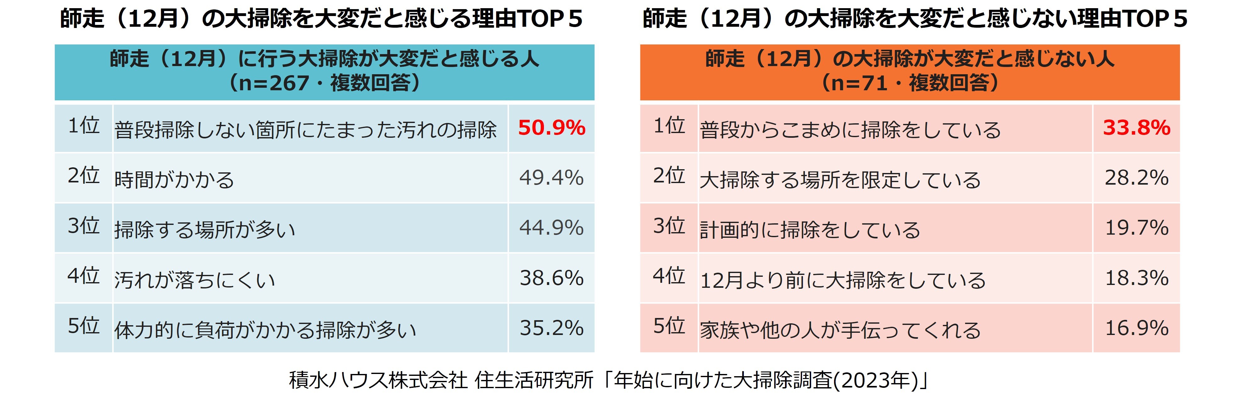 ・引用元が「積水ハウス株式会社 住生活研究所」による調査である旨と、引用元調査「年始に向けた大掃除調査(2023年)」の記載をお願いします。