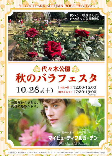 今季のテーマは、「公園だからできる」。昼は広大な森林公園ならではのワークショップや、2つのバラスポットを巡るガイドツアー、夜には「野外シネマ」が登場し、草の上でゆったり映画鑑賞ができます。代々木公園らしい、のびのびとしたバラフェスタをお楽しみください。