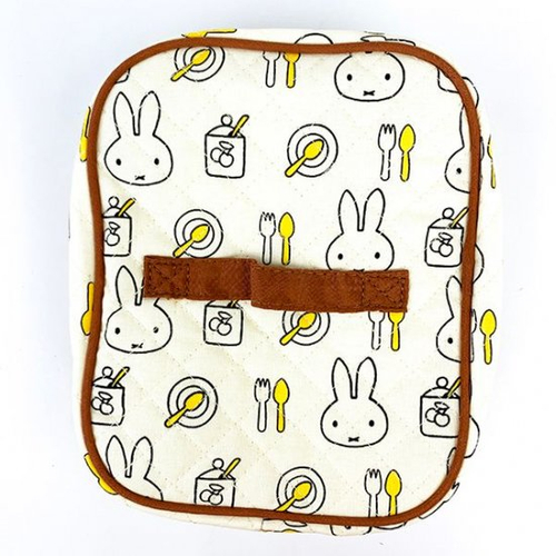 全面にかわいいミッフィーのお顔や、カトラリーなどのデザインが描かれている生地です。