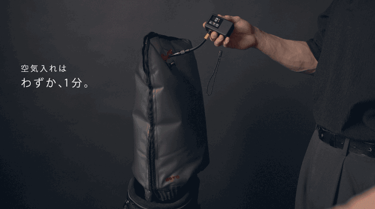 空気の入れ具合を調整することで、スリムなスタンドバッグから、プロが使用するような大型のスタッフバッグまで幅広く対応可能です。