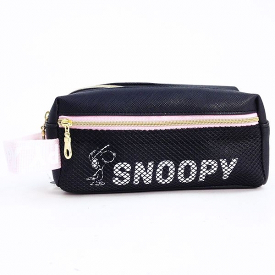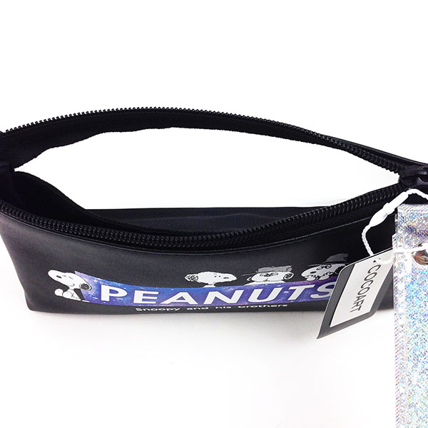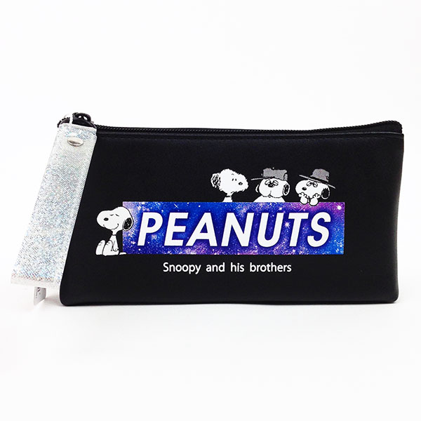 まずは、スヌーピーのブラザーたちがデザインされたペンポーチです。シックなブラック地ですが、ラメ感のあるロゴやストラップが綺麗です。とぼけた表情のブラザーたちもキュート♪