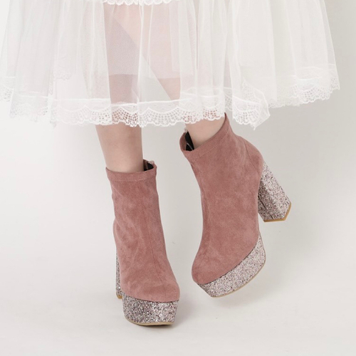 『ラク盛りグリッターヒールショートブーツ P06-67044』