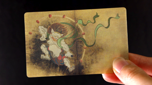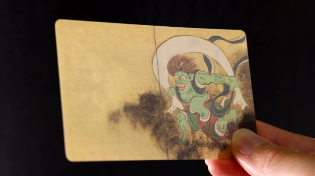 風神雷神図屏風(東京国立博物館蔵、尾形光琳筆)をモチーフとしたもの。