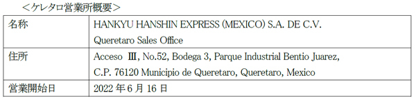 当社メキシコ法人であるHANKYU HANSHIN EXPRESS (MEXICO) S.A. DE C.V.は、メキシコ中央高原エリアのケレタロ市に新たに営業所を開設し、6月16日より営業を開始します。