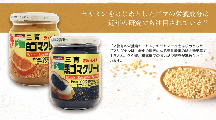 三育フーズの「黒ゴマクリーム」は、香り高く焙煎した黒ゴマを皮ごと使用し、素材本来の風味を活かしたコク深い味わいが特長のスプレッドです。