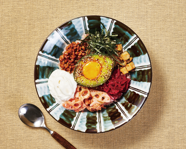 ブッダボウルとは、野菜・穀物・ナッツなど多彩でヘルシーな食材を盛り合わせたどんぶり。今回「Tsumugiオリジナルブッダボウル」に新しいラインナップ「月見アボカドと納豆のブッダボウル」「大豆ミートのロコモコ風ブッダボウル」「30品目のバランスブッダボウル」の3種類が追加されました。