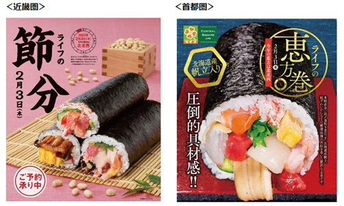 “おいしい” “ワクワク” “ハッピー” をお届けするライフコーポレーションは、2月3日(木)の節分に、ライフオリジナル恵方巻を店頭販売いたします。