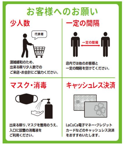 ①安全・安心にお買い物いただくため、比較的混雑が少ない時間帯でのご来店にご協力をお願いいたします。