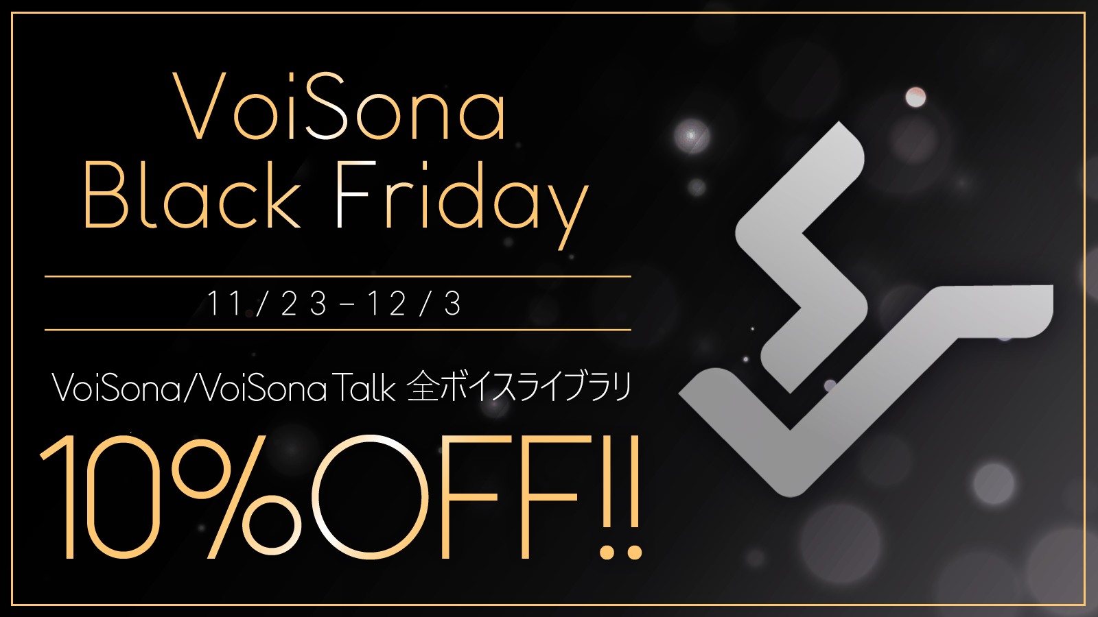 2024年12月3日まで、「VoiSona」および「VoiSona Talk」の全ボイスライブラリを対象としたブラックフライデーセールを開催中です。この機会に是非お買い求めください。
