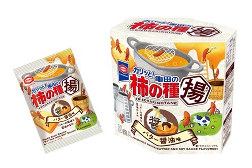 お土産にぴったりな『亀田の柿の種揚 バター醤油味』は、濃厚なバターの風味がお楽しみいただけます。いつもの「亀田の柿の種」にひと手間加え、柿の種に衣をつけてからフライをすることで、パリッとカリッとした食感に仕上げています。フライした生地にバターオイルをかけ、さらにその上からパウダーで味付けをすることで濃厚なバターの風味がお楽しみいただけます。