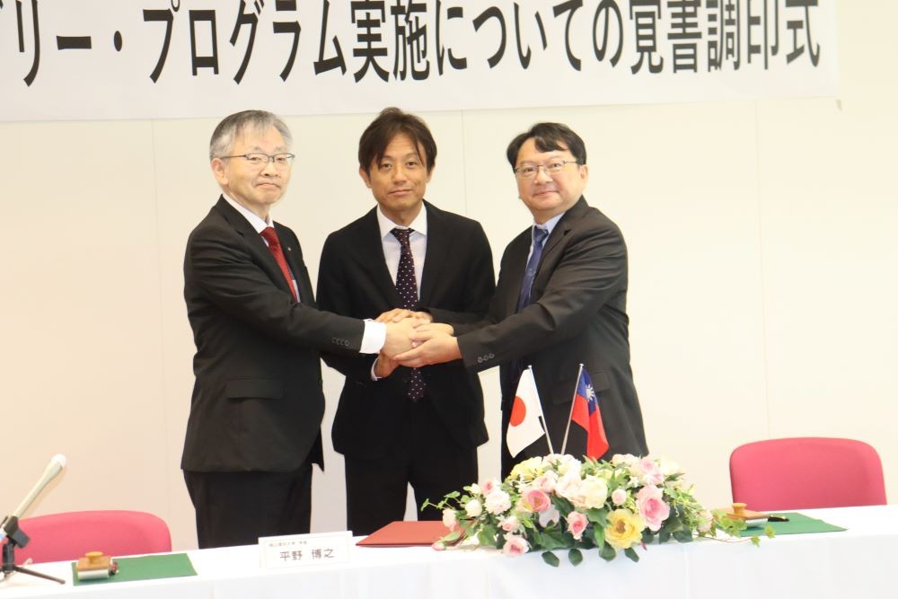 調印式は岡山キャンパスの加計学園創立50周年記念館で行われ、加計学園の加計役理事長、理大の平野博之学長、南善子副学長と明新科技大の呂明峯学長、高國檳・日本プロジェクトオフィス執行長らが出席しました。