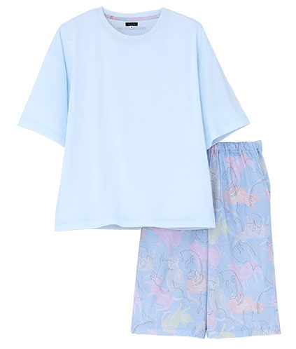 「Tuché」スイーツファブリックシリーズは、素材の特長をスイーツにまつわる言葉で表現したシリーズで、これまで「バターサテン」「ホイップニット」「カヌレベロア」などを発売。素材にこだわったやさしい着心地と大人かわいいデザインが人気のシリーズです。今回発売した「マカロン天竺」は、ふんわりやわらかな肌触りの素材を採用。マカロンのような カラーリングや、柄のバリエーションにもこだわりました。リラックスタイムに活躍する半袖やフレンチ袖のトップスと5分丈パンツのセットアップ「ROOM」、お手持ちのトップスと組み合わせて楽しめる「Half Bottom」、襟元のシルエットが かわいらしいシャツスタイルの「NIGHT」をラインアップしました。気分やシーンに合わせて楽しめる「Tuché」スイーツファブリックのウェアで、快適なおうち時間をお過ごしください。
