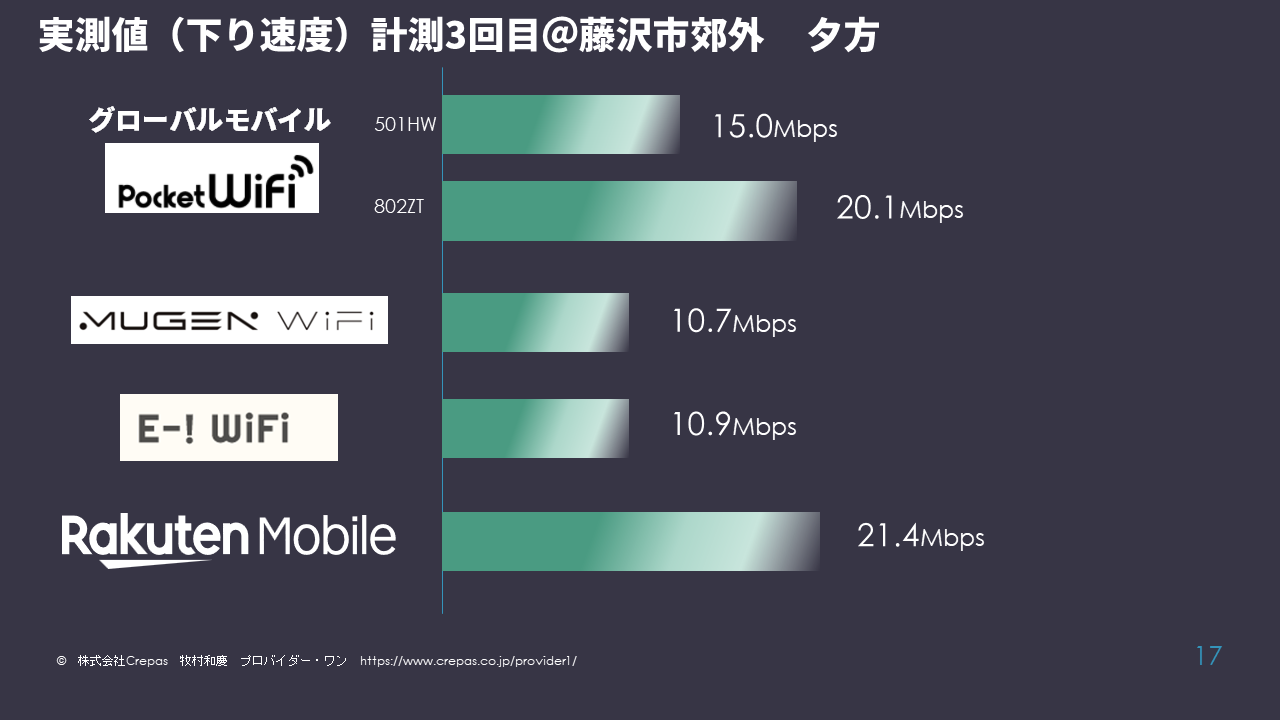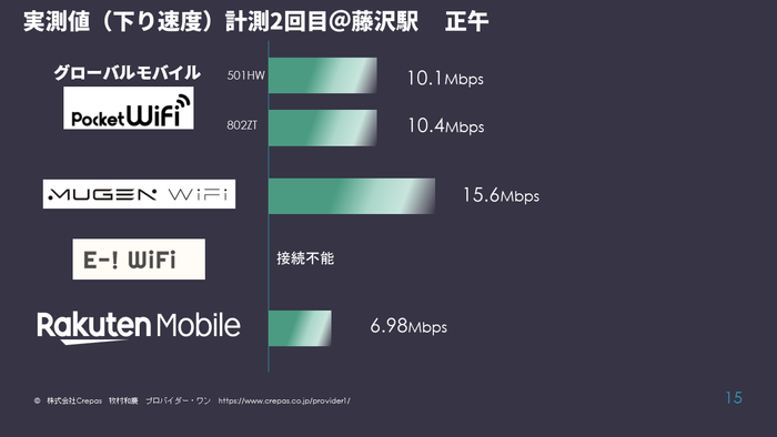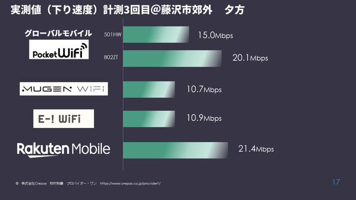 今回の計測では前回の計測結果発表に引き続き、別のモバイルWiFiを用意し、計測を行いました。