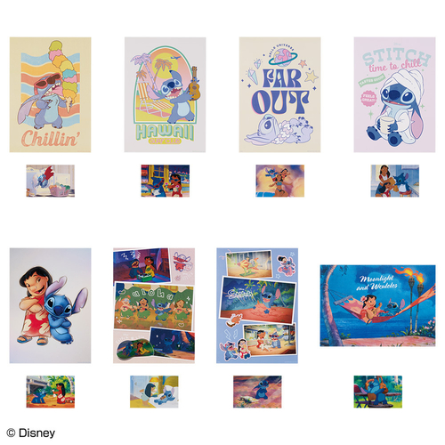 A賞は、スティッチが絵本「みにくいあひるの子」を読んで「家族」というものを知る、特別なシーンを切り取ったカードスタンドフィギュア。相棒のスクランプとアヒルが寄り添うフィギュアの後ろに、ポストカードを立てかけられます。B賞のぐっすりと眠るスティッチのぬいぐるみは、抱きしめたくなるようなフワフワな仕様となっています。C賞には、リロとスティッチがくつろいでいるハンモックをイメージしたビッグサイズのタオル、D賞には、スティッチと相棒のスクランプのぬいぐるみマスコットをラインナップ。このほか、夏のウキウキした気分を盛り上げるカラフルなプレートコレクション、様々な表情のスティッチのポスターと、映画『リロ&スティッチ』より印象的なシーンを切り取ったポストカードのセット、パステルな色味のステーショナリーアソート、ラバーチャームコレクションと、いずれも「リロ&スティッチ」の魅力満載のアイテムです。