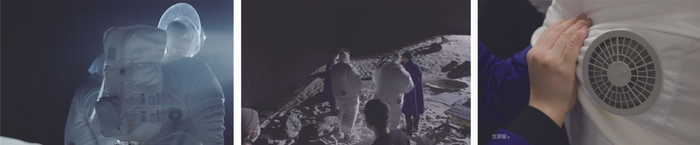 無重力や厳しい温度差から身体を守る宇宙服のイメージと、空調服(R)の特徴である膨らんだフォルムがマッチし、発表された18LOOKのうち、2つのLOOKで空調服(R)が採用されました。