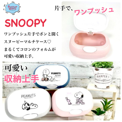 ワンプッシュで開くフタ付きのスヌーピーマルチケースをご紹介♡片手でポンと開くから気持ちいいんです。まるくてコロンとしたフォルムが可愛くって、見ているだけでもなんだか癒されるケースとなっております。