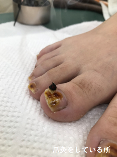 「爪灸(つめきゅう)」とは、爪に直接米粒くらいのお灸を置くことで指先から冷えの改善を目指す施術方法です。