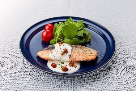 ビフィズス菌入りヨーグルトで菌、なめこで食物繊維を摂取できます。魚の中でもサーモンは、日本人に足りないビタミンD 含有量がトップクラス。同じ発酵食品の味噌とコラボしたソースは味噌の塩分、旨味が活躍しています。レンジで加熱したなめこを加えると触感が良く、とろみのあるヨーグルトソースになります。